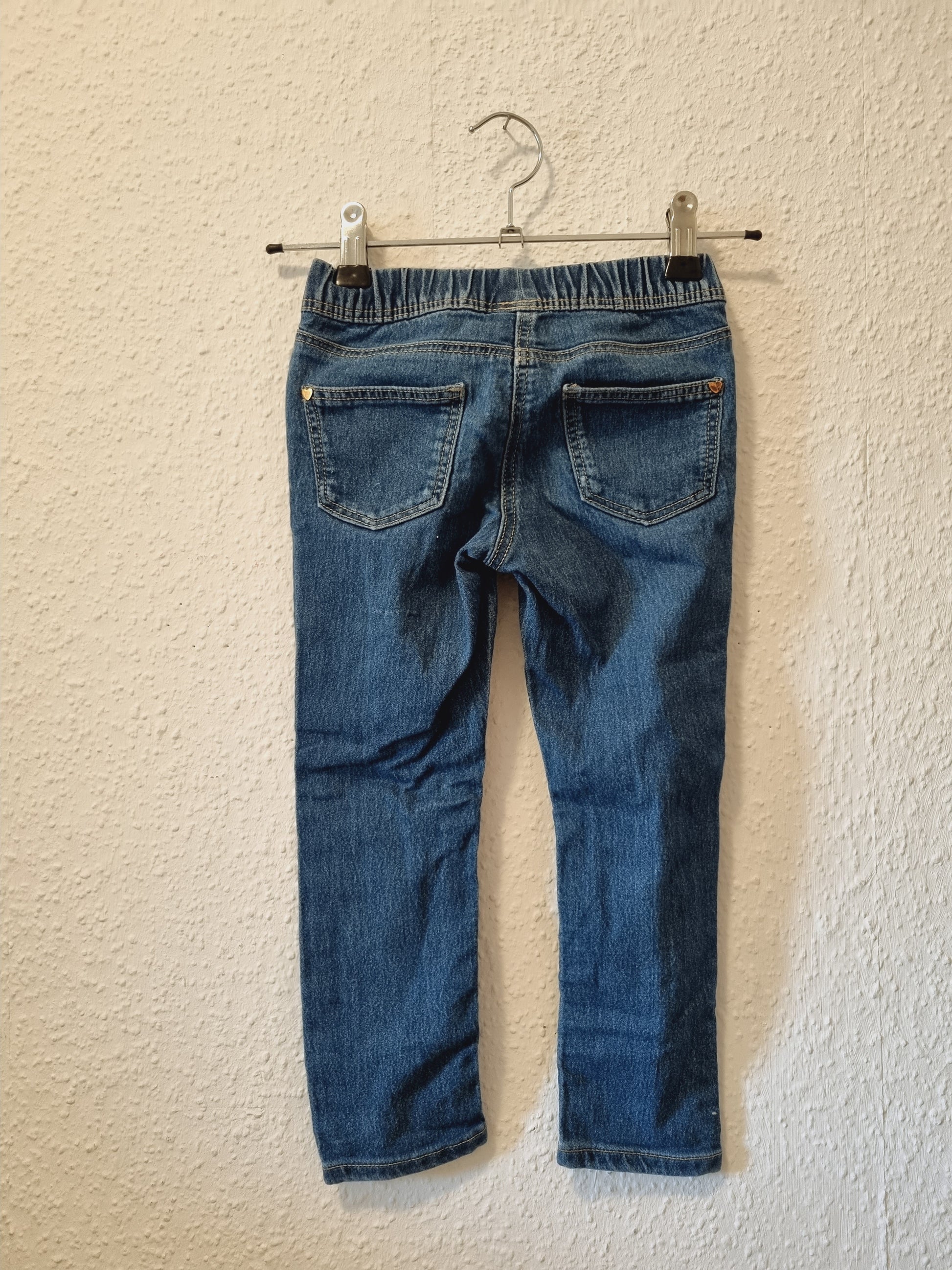 Jeansjegging in blau mit braunen Nähtenn und geradem Bein. Perfekt für die kleinen Fashionistas! Die angedeuteten Vordertaschen verleihen einen coolen Look und die tiefen Gesäßtaschen bieten genügend Stauraum. Mit dieser Hose sind Kinder im Trend und bequem unterwegs.