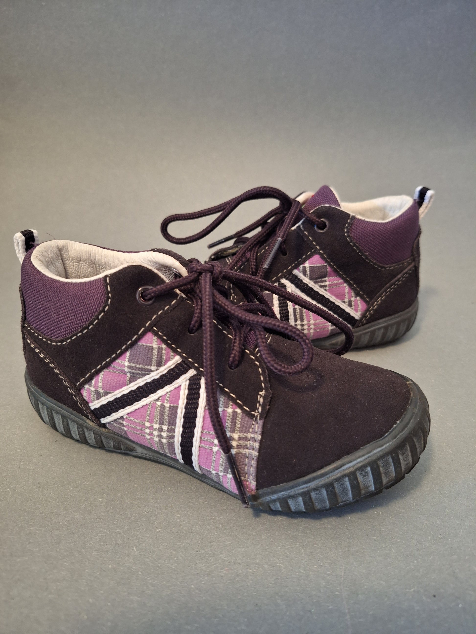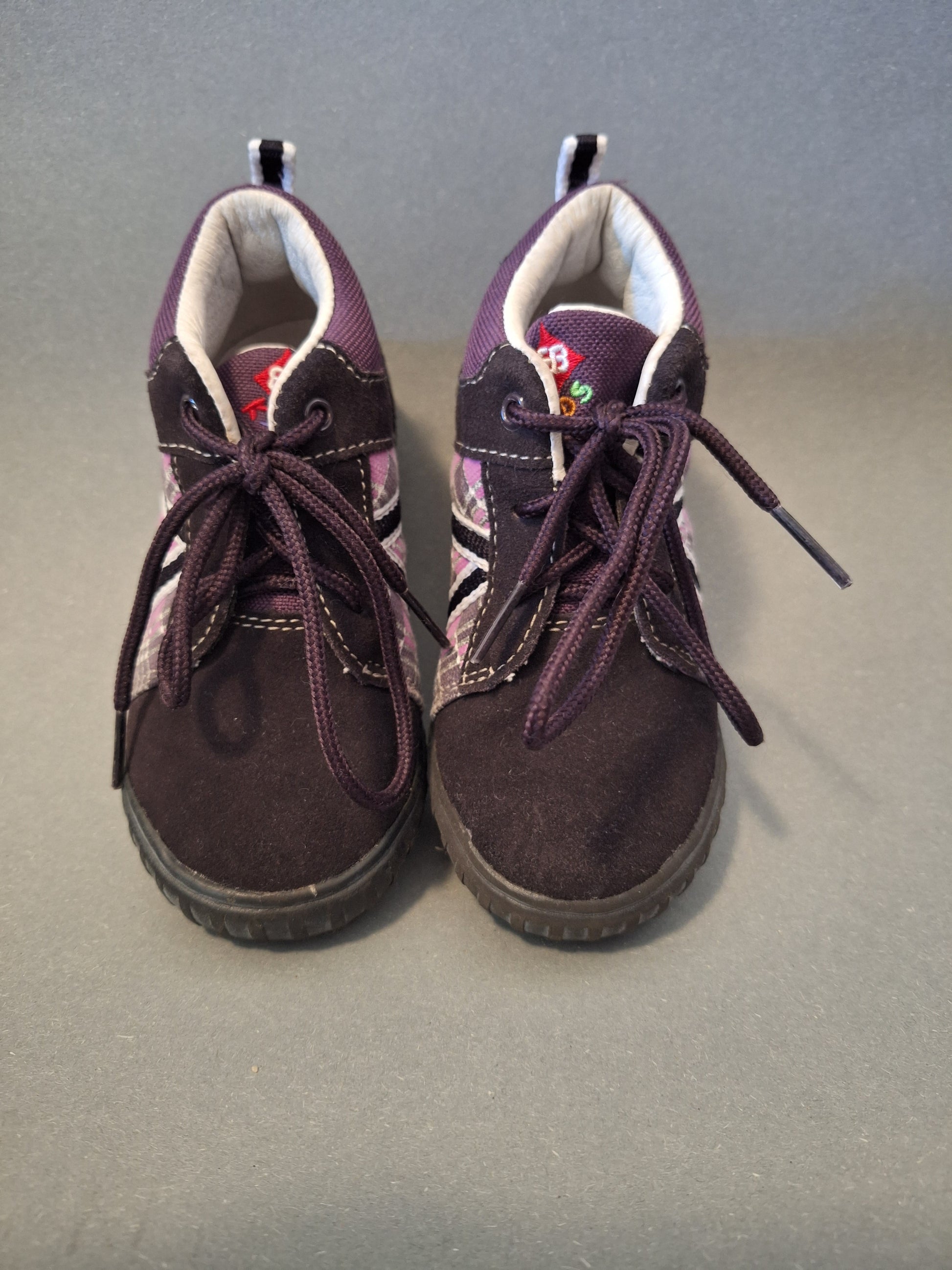Die Lauflernschuhe von EB Kids sind die perfekte Wahl für kleine, wachsende Füße. Mit ihrem vorgezogenen Gummisohlenbereich und rutschfestem Halt bieten sie eine sichere Unterstützung beim Laufenlernen. Das antiallergische Innenfutter sorgt für zusätzlichen Komfort. Aus Velourleder und Textil gefertigt, sind sie nicht nur langlebig, sondern auch stilvoll in dunkel Lila und Violett.