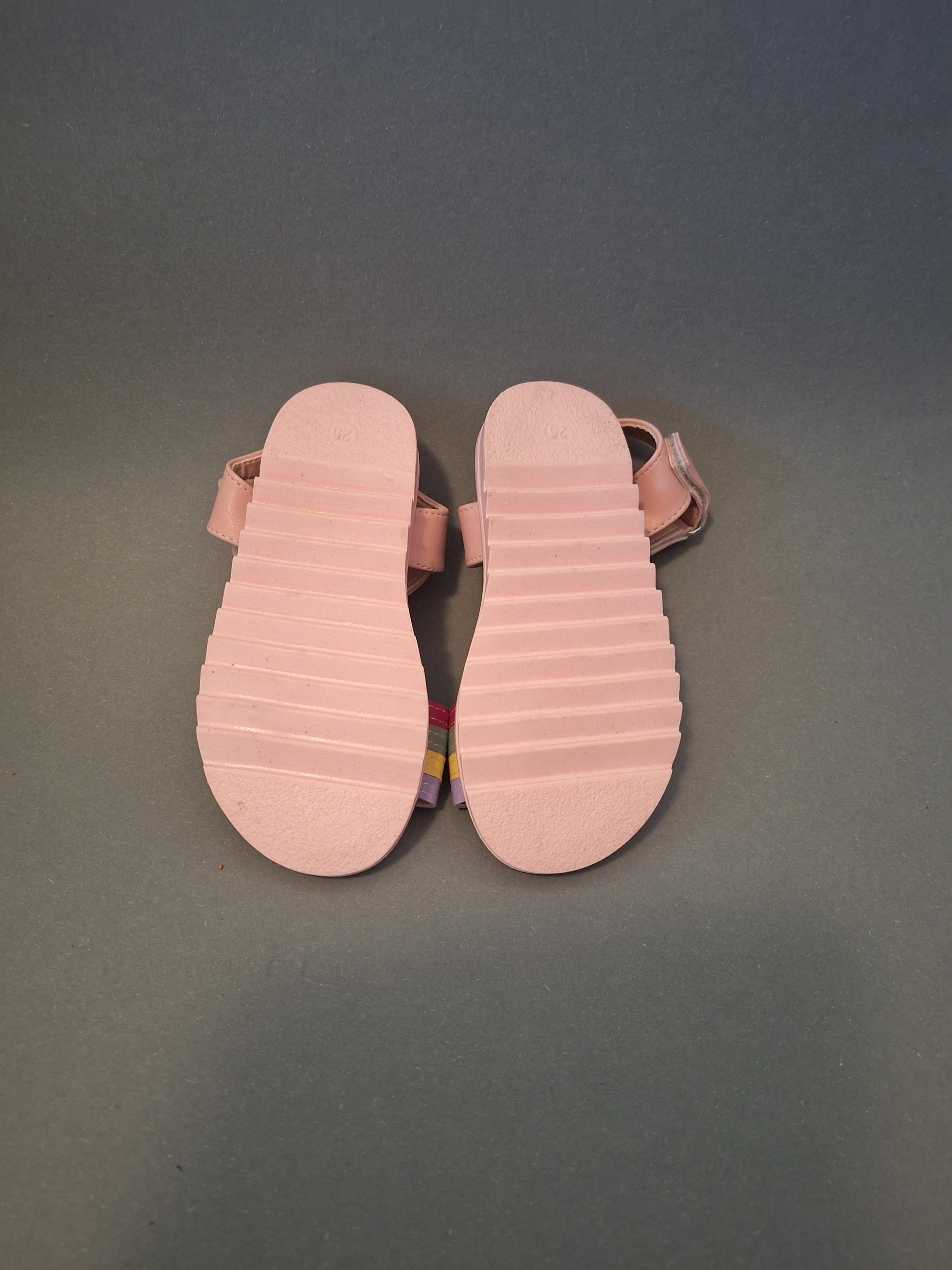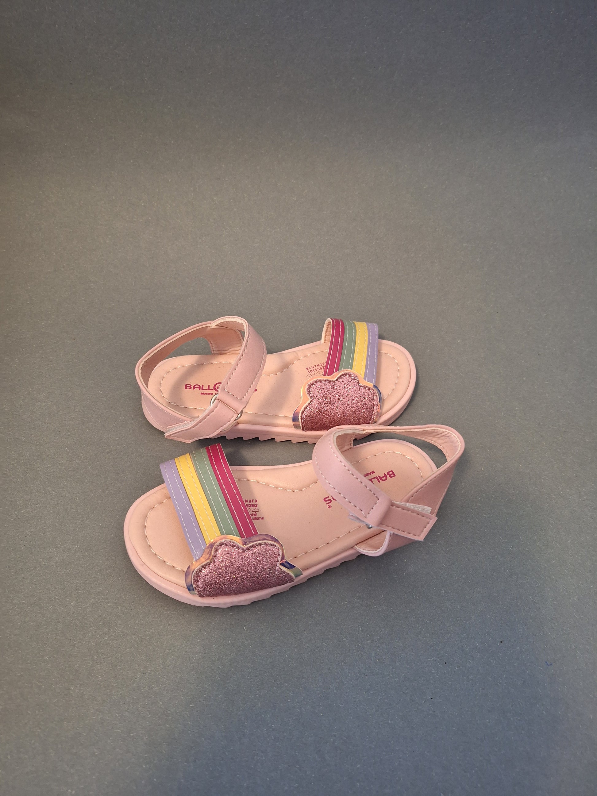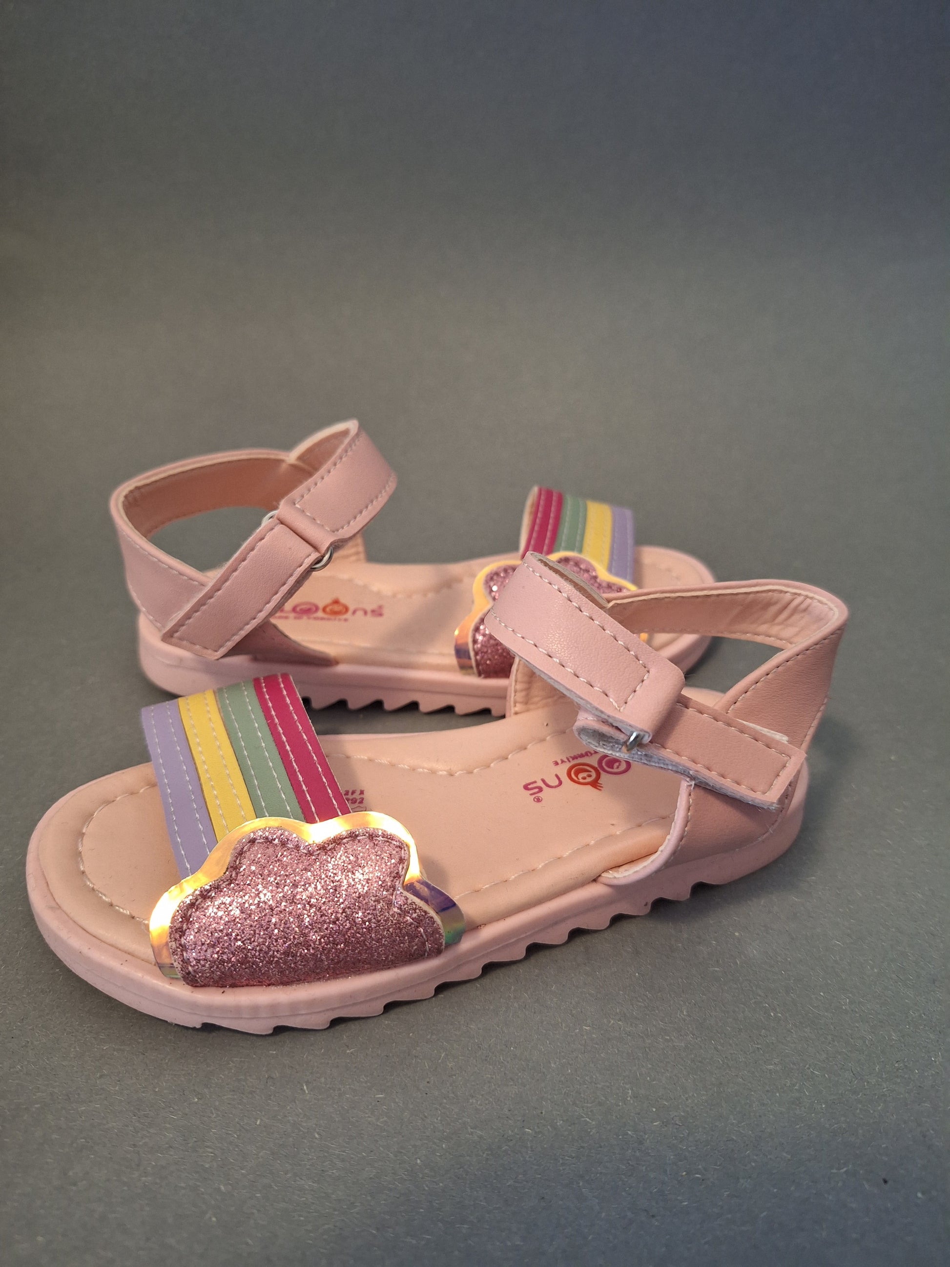 Diese rosa Sandalen sind perfekt für kleine Mädchen! Die funkelnde Glitzerwolke mit dem regenbogenfarbenen Streifen auf den vorderen Riemen sorgt für einen verspielten Look. Der Klettverschluss ermöglicht eine individuelle Passform und die feste Sohle bietet Komfort und Halt auf allen Abenteuern.