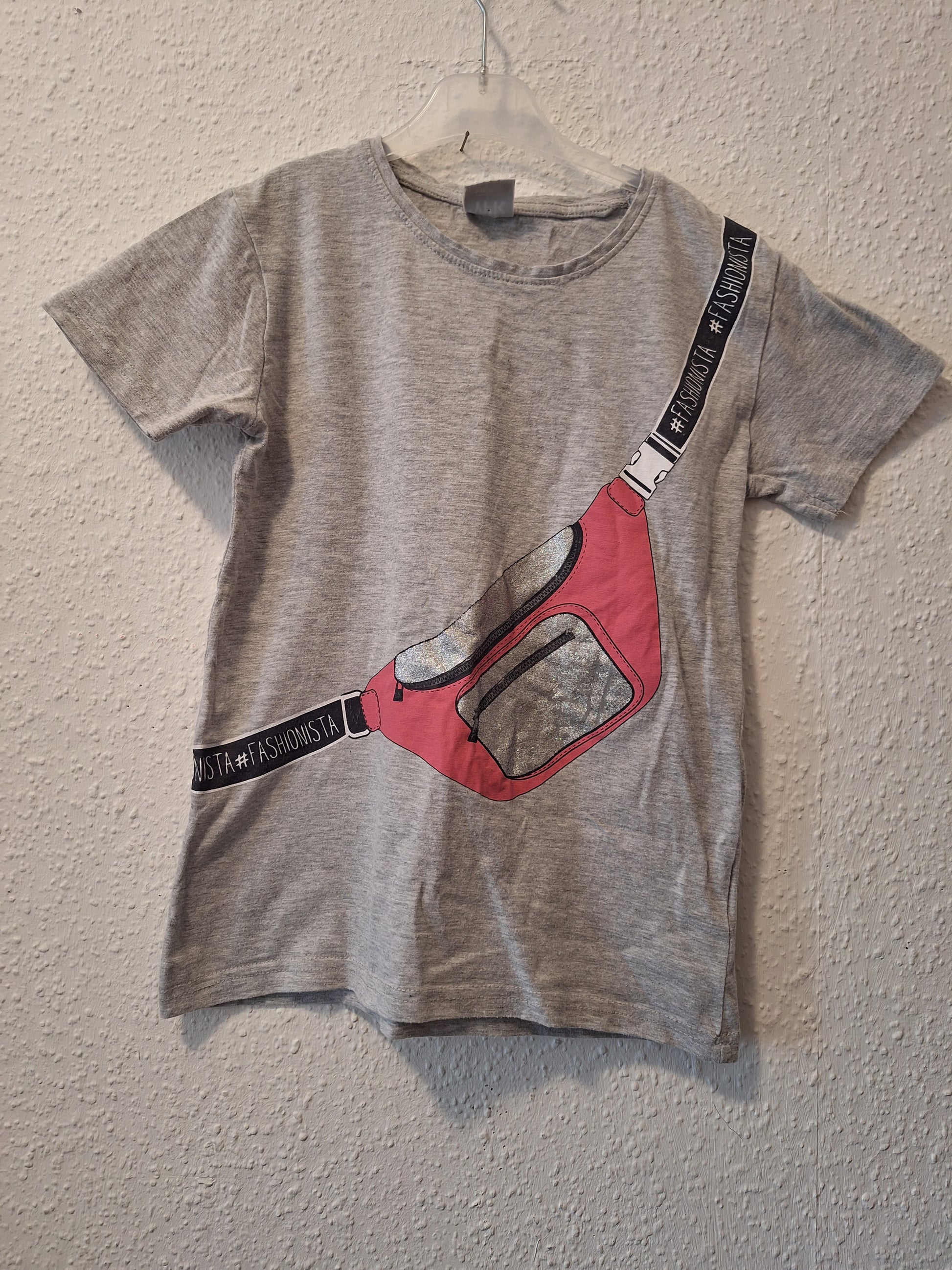 Dieses graue Shirt für Mädchen besticht durch einen auffälligen Aufdruck einer rosa Umhängetasche mit silbernem Glitzer. Es verbindet ein schlichtes Design mit einem kleinen, funkelnden Highlight und ist ideal für den Alltag.