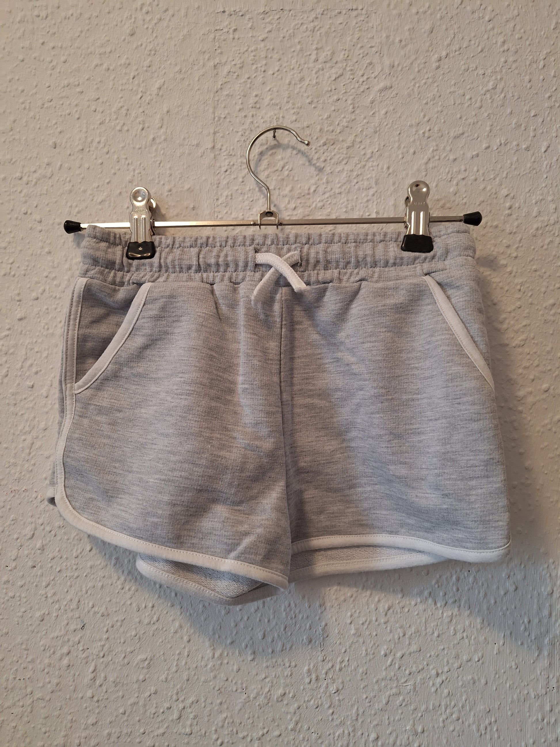 Diese hellgraue kurze Hose mit weißen Details und einer weißem Zugband vorne ist perfekt für den Sommer. Die weiße Umrandung verleiht der Hose einen süßen Akzent.