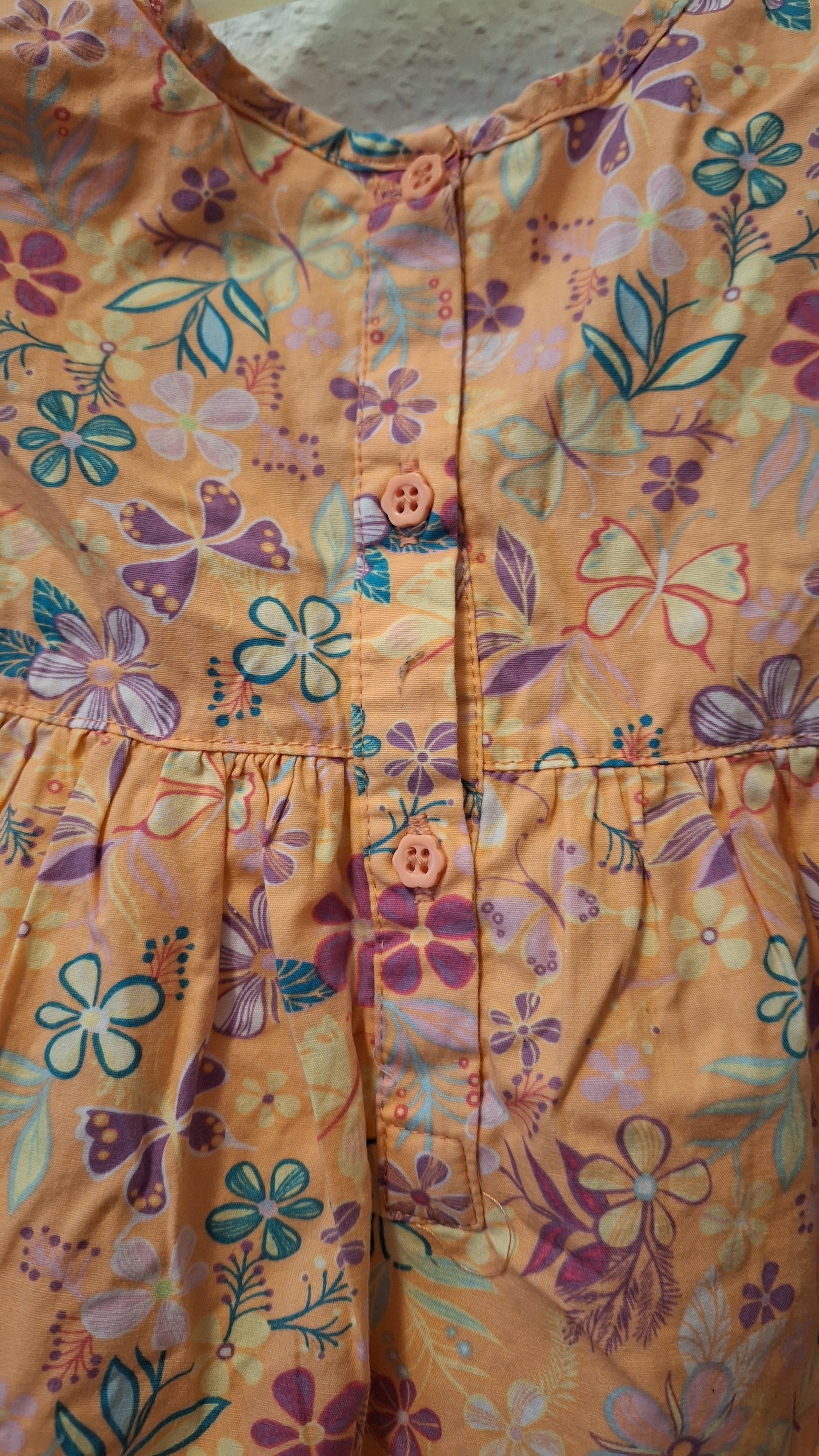 Dieser süße Sommer Zweiteiler in leuchtendem Orange ist perfekt für kleine Mädchen. Mit dem bunten Blumen- und Schmetterlingsaufdruck ist er nicht nur ein echter Hingucker, sondern auch angenehm zu tragen. Der Zweiteiler besteht aus einer kurzen Hose und einem Shirt und ist somit ideal für warme Tage.