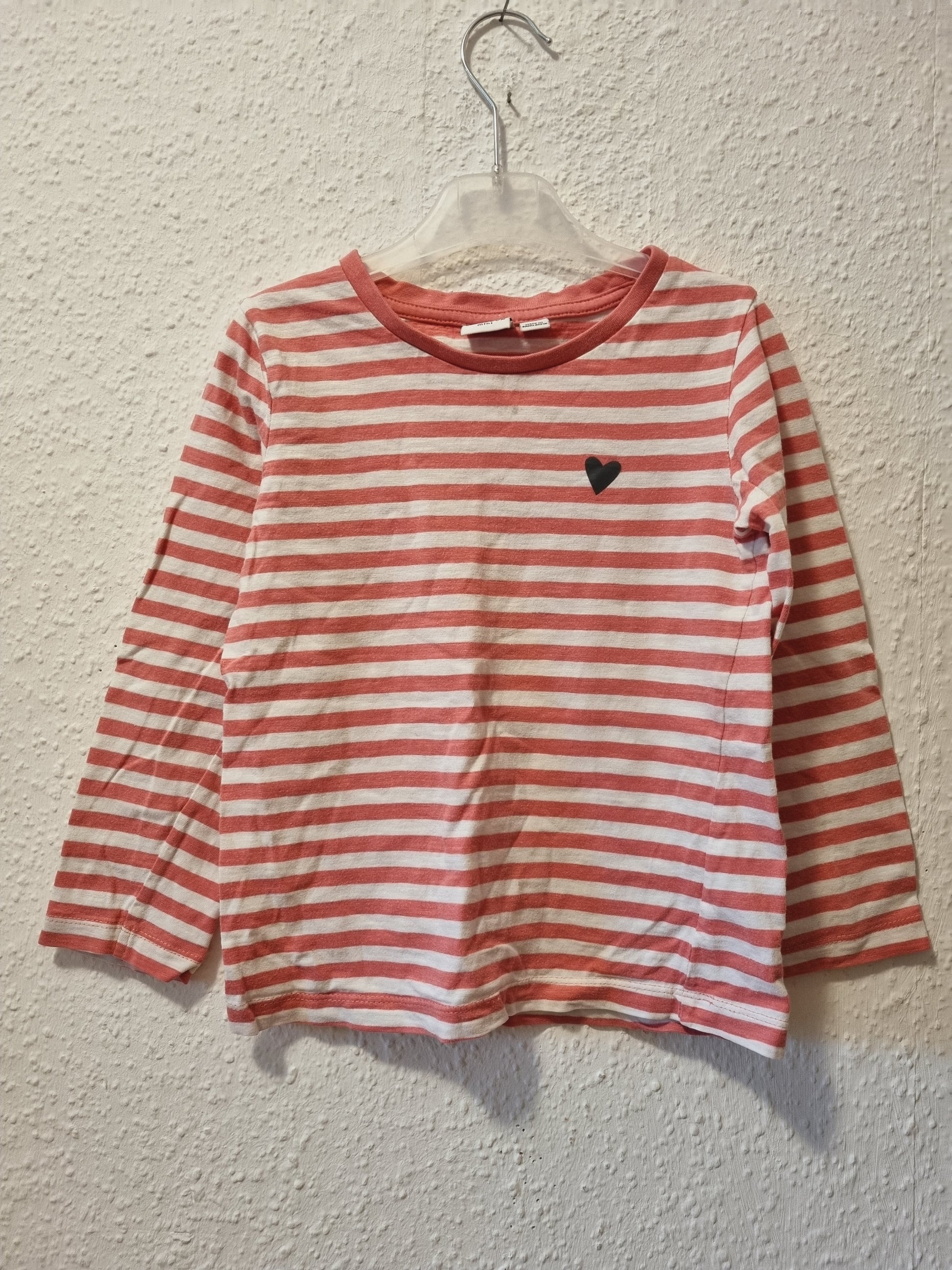 Ein klassisches Sweatshirt in weiß mit roten Streifen. Auf der rechten Brustseite ein kleines schwarzes Herz.