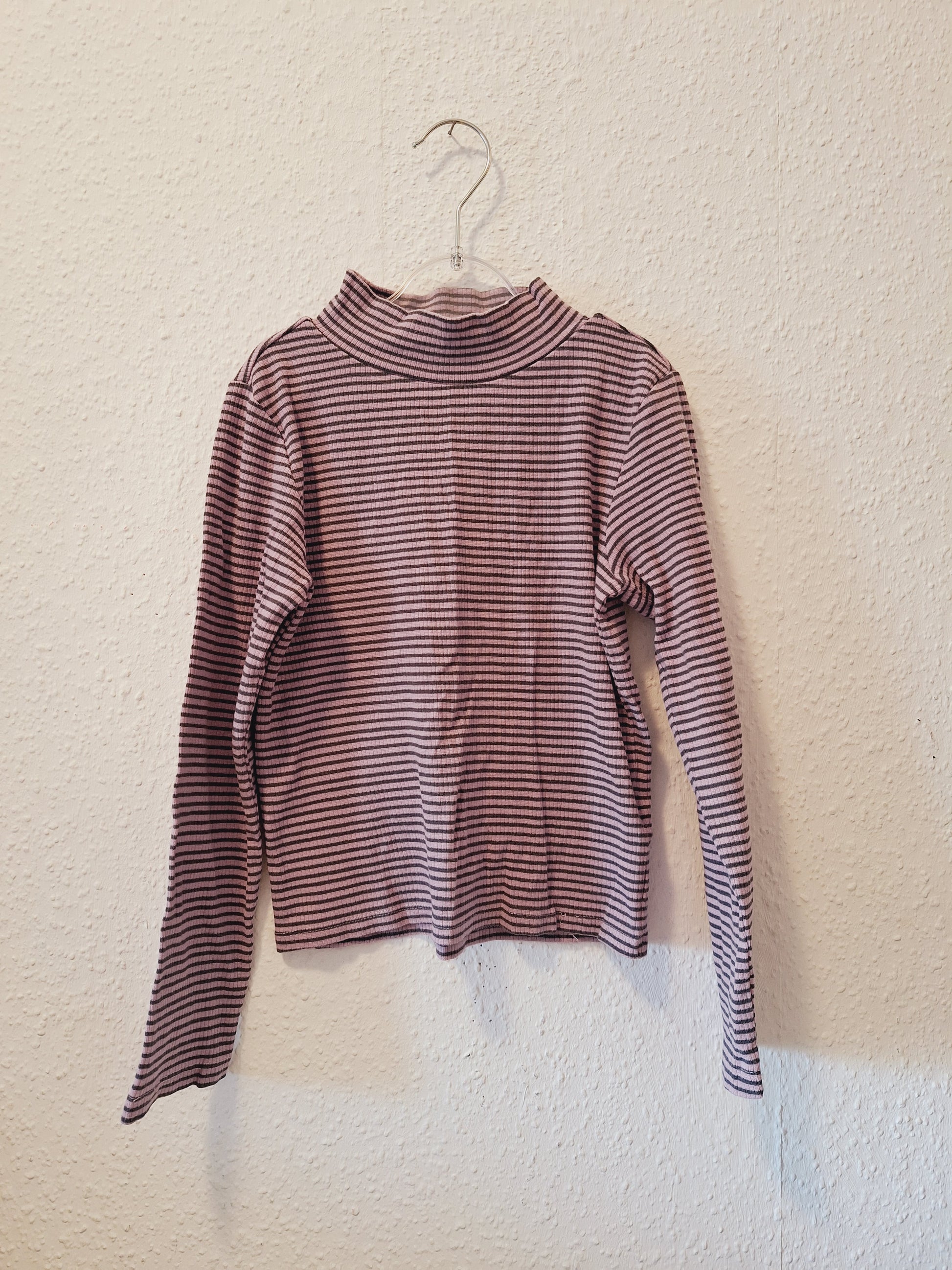 Dieses gestreifte Sweatshirt in den Farben Lila und Schwarz ist perfekt für kleine Mädchen geeignet. Der kleine Stehkragen sorgt nicht nur für einen schicken Look, sondern auch für zusätzliche Wärme. Ein Must-Have für jedes modische Kind!