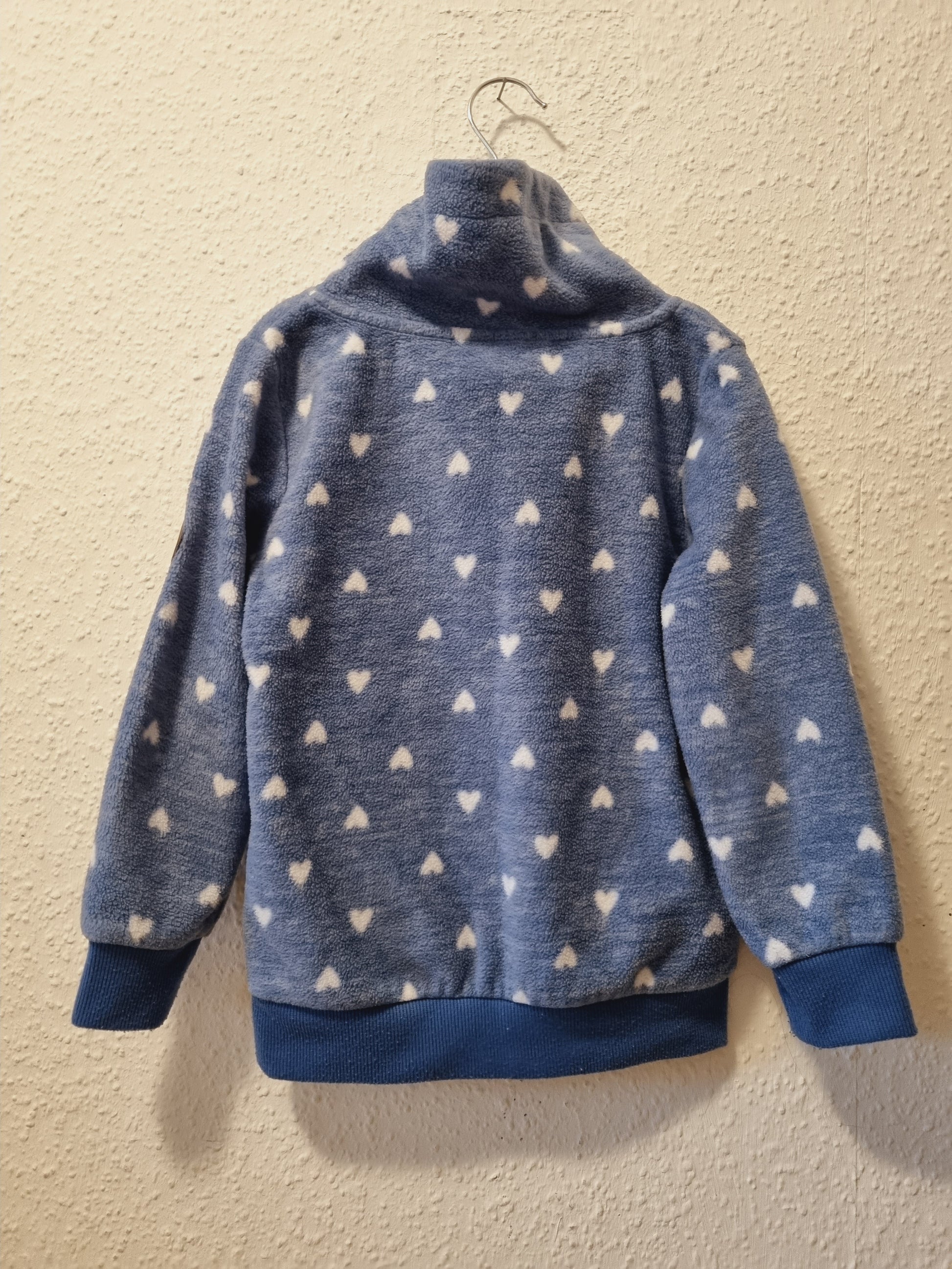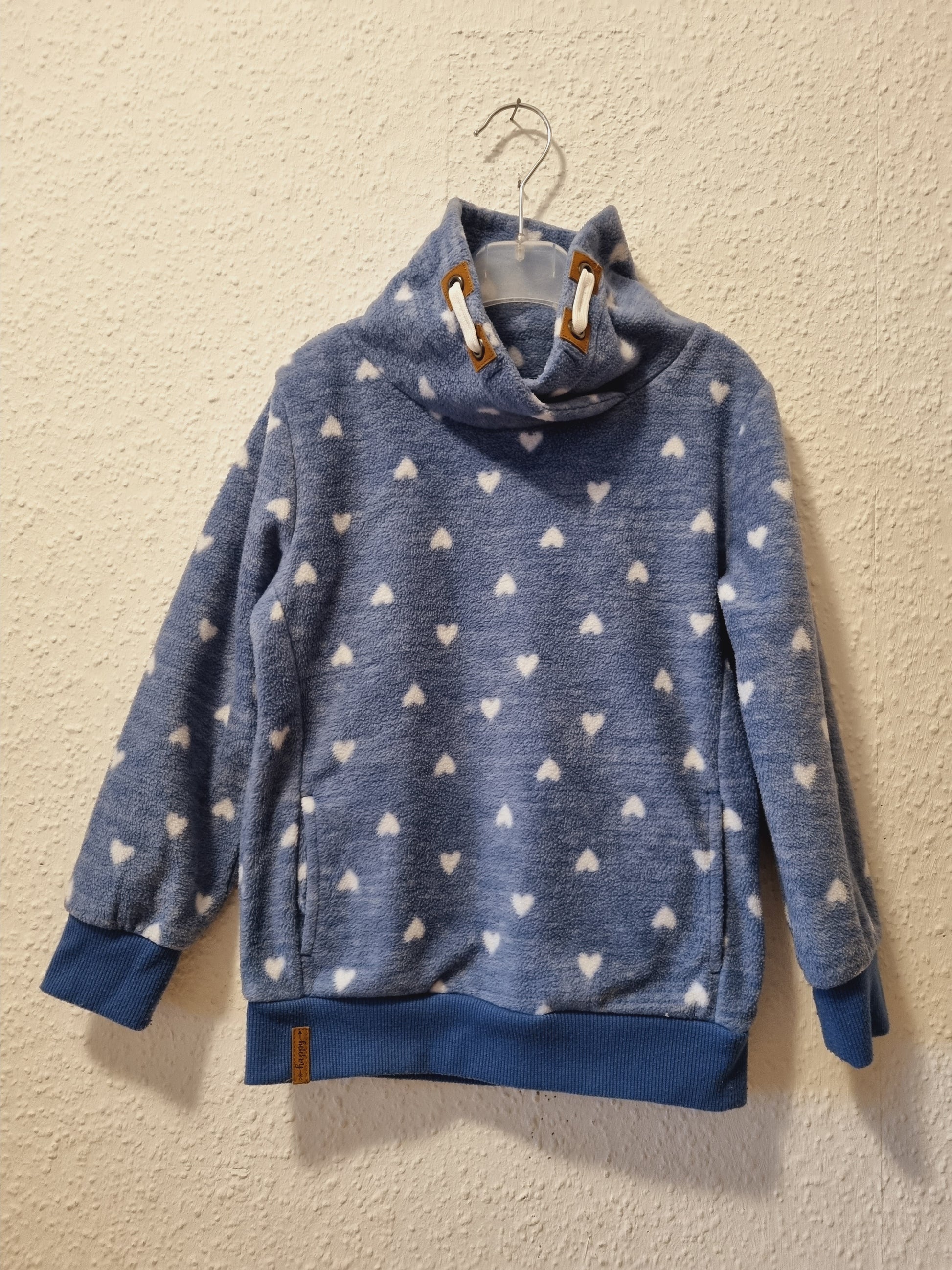 Dieser flauschige Pullover in Hellblau mit Stehkragen ist mit süßen weißen Herzchen verziert und perfekt für Mädchen. Er hält warm und sorgt für ein angenehmes Tragegefühl an kühlen Tagen.