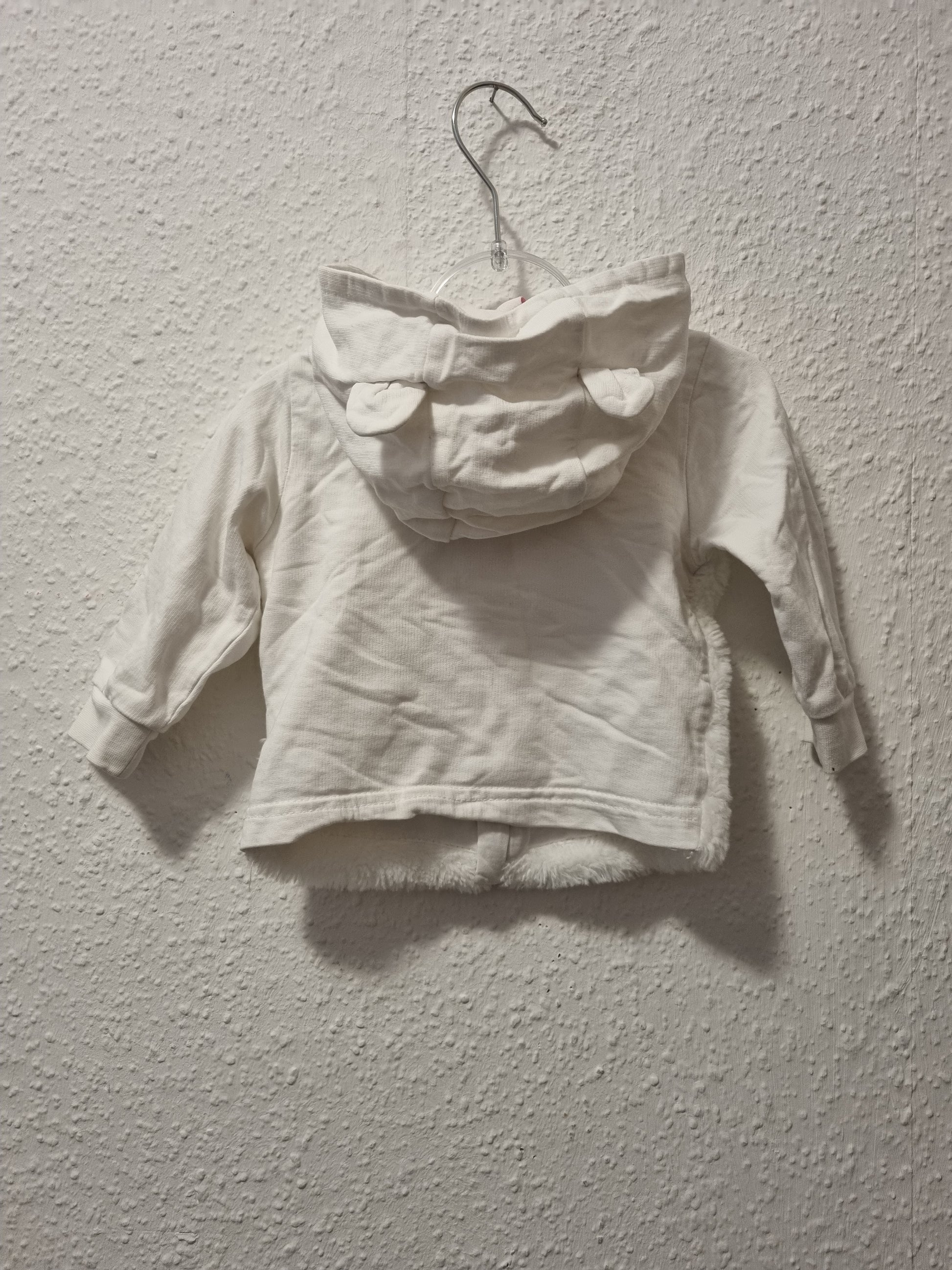 Diese dünne Kaputzenjacke in weiß ist perfekt für Kleinkinder. Sie hat einen modischen Fellbesatz vorne und bietet zusätzlich Wärme und Komfort. Der Reißverschluss und die Taschen vorne machen sie praktisch und funktional für den Alltag.