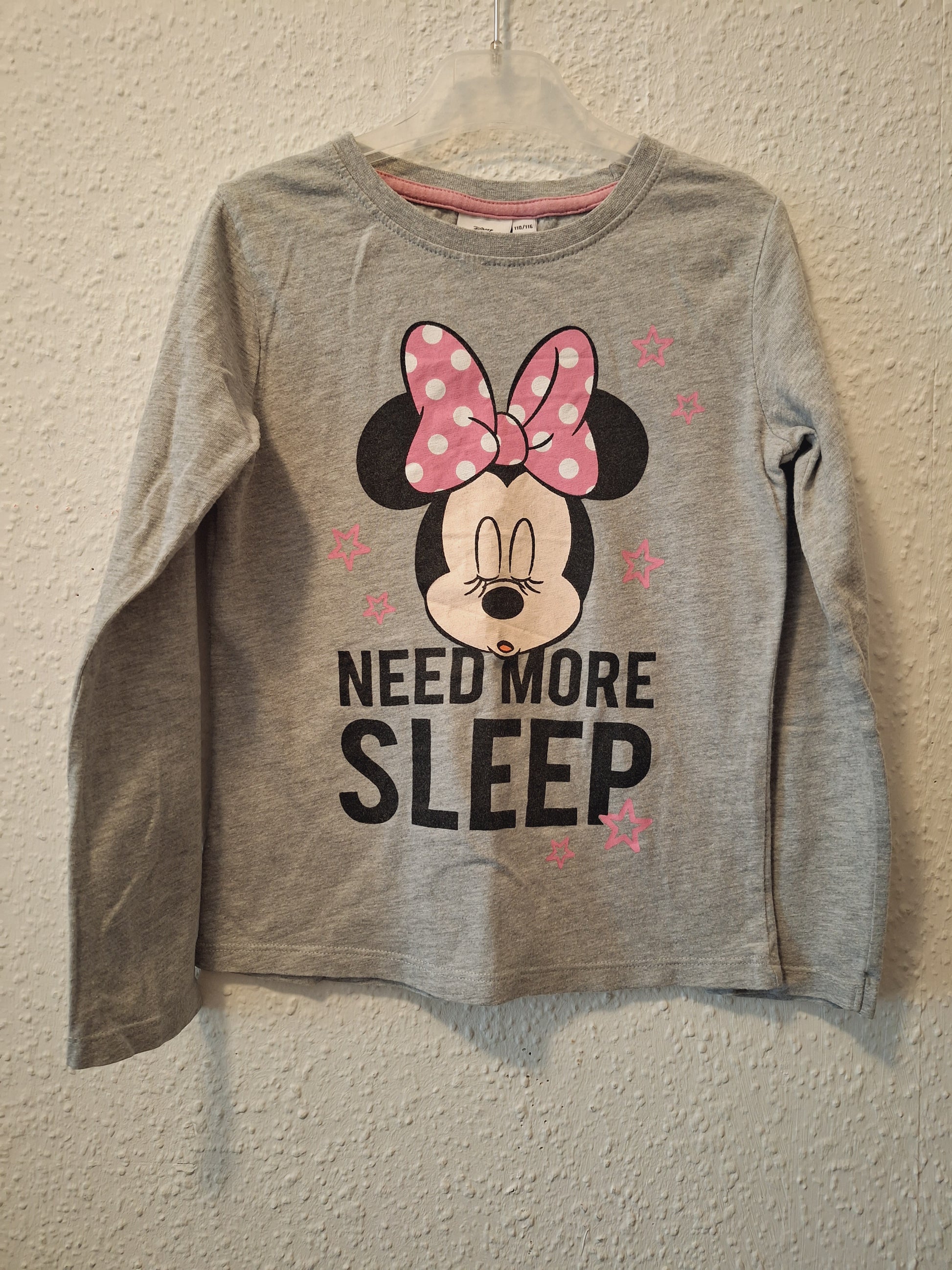 Dieses graue Schlafoberteil für Mädchen besticht durch das niedliche Mini-Mouse-Motiv und den Schriftzug „Need More Sleep“.